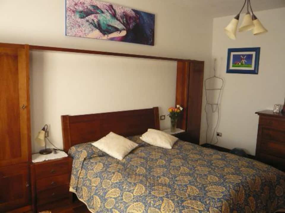 Camera matrimoniale spaziosa e molto luminosa con vista sulla montagna.